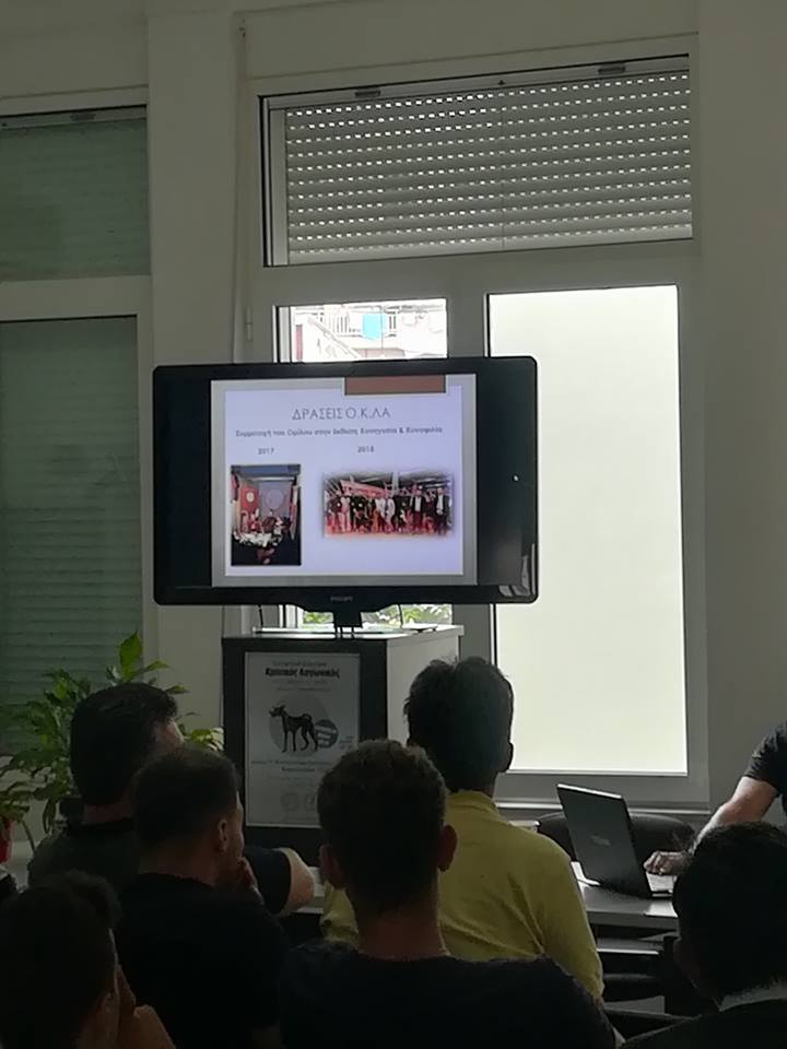 Άκρως επιτυχημένο το σεμινάριο του Ομίλου Κρητικού Λαγωνικού στο 1ο Κυνηγετικό Σύλλογο Χανίων από κάθε άποψη. Η διοργάνωση και η φιλοξενία ήταν άριστη και ο κόσμος υποδέχτηκε θερμά την παρουσία του Ομίλου Κρητικού Λαγωνικού δείχνοντας ειλικρινές ενδιαφέρον, στήριξη και θέληση για διοργάνωση της επόμενης έκθεσης του Ομίλου στα Χανιά. Η παρουσίαση που αφορούσε τα φυλετικά χαρακτηριστικά μορφολογικού και εργασιακού τύπου εξέπληξε ευχάριστα το κοινό.